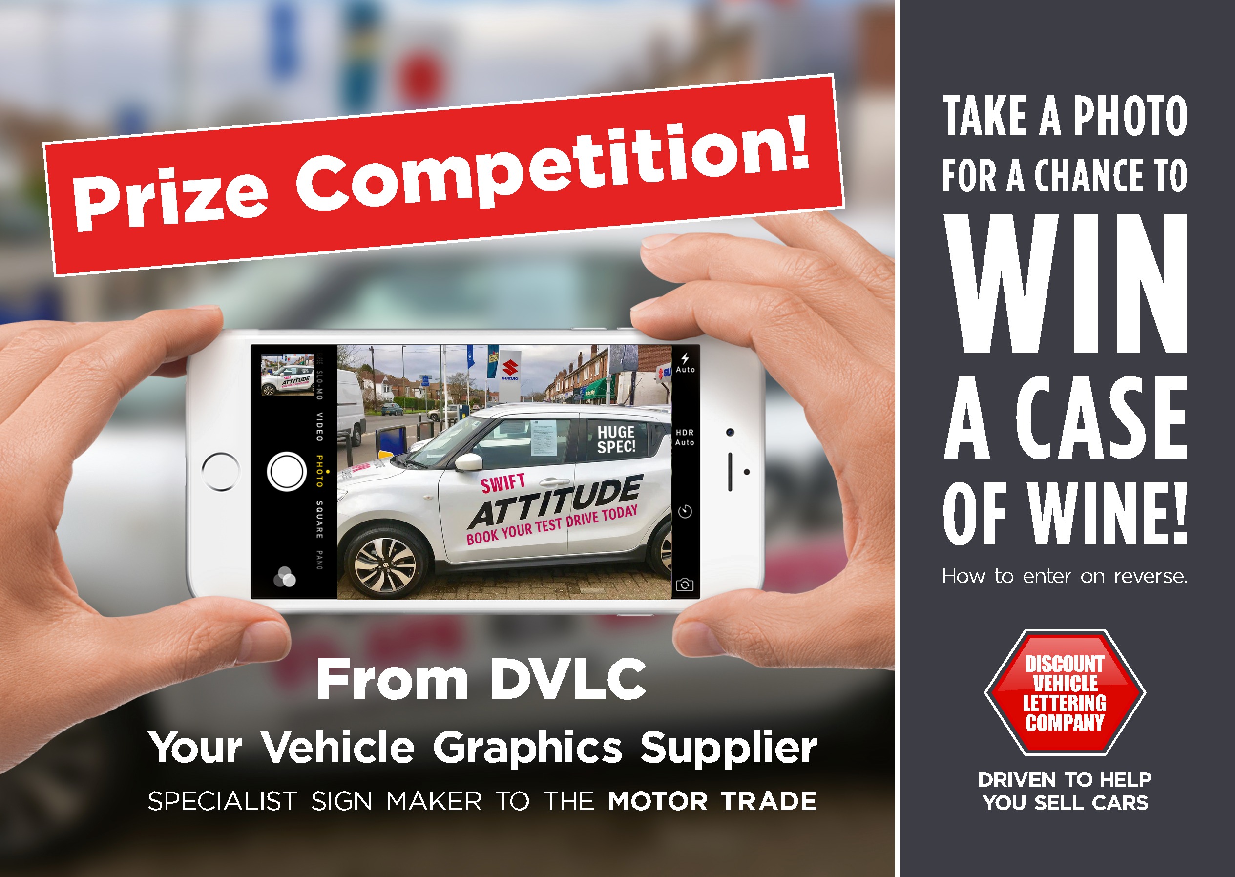 Look out for our competition flyer in all orders! For your chance to win a case of wine courtesy of DVLC, simply take a photograph of our graphics once fitted at your dealership and email to sales@www.gotodvlc.co.uk You will then be entered into our free MONTHLY PRIZE DRAW! Please include any feedback you may have…