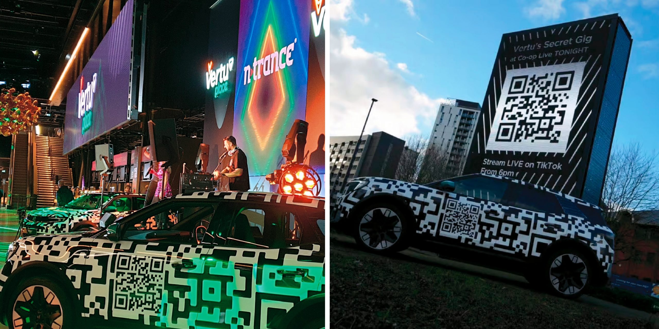 To help launch the venue, we wrapped two vehicles with a QR Code design to direct people to Vertu’s Secret Gig, which was streamed live on TikTok.