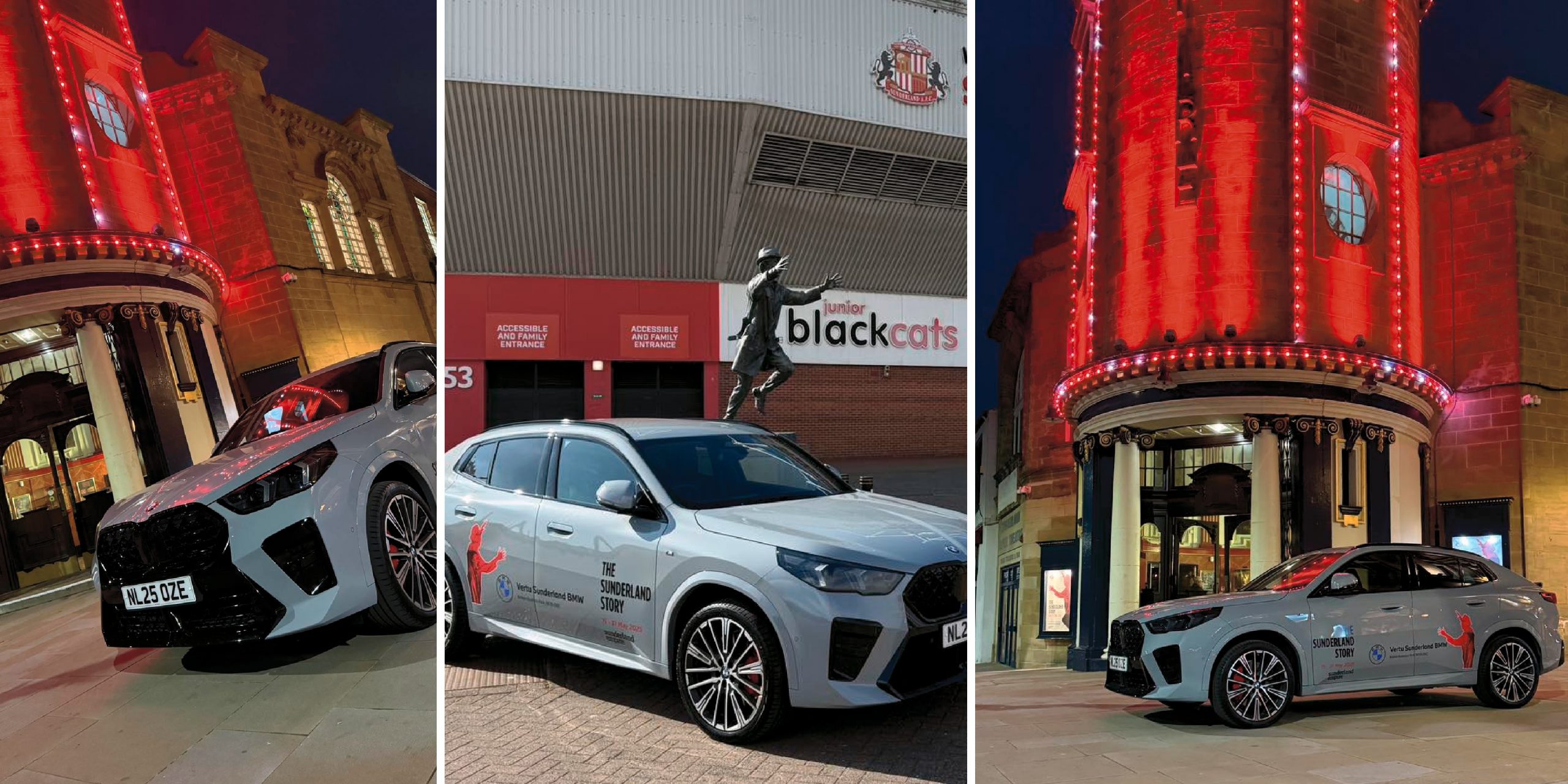 We recently supplied Vertu BMW Sunderland a decal kit to promote the theatre production “The Sunderland Story” and I am sure you will agree it looks great against the stunning background of the Sunderland Empire.